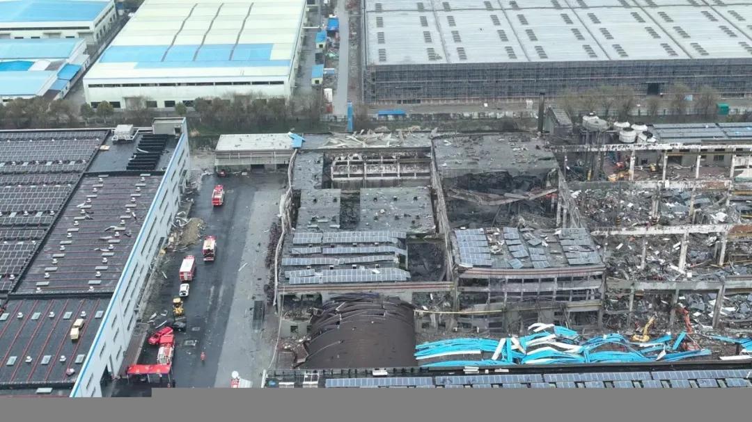 俯拍事故发生现场,厂房出现坍塌 图片来源:受访者提供(资料图)